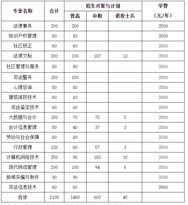 备注:最终招生专业及计划以省教育厅下达为准。