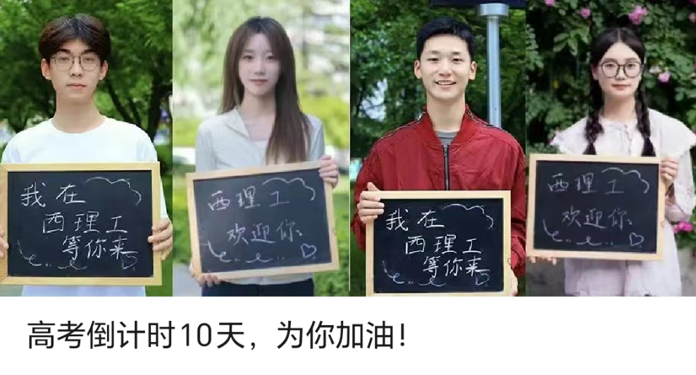祝愿参加高考的莘莘学子:寒窗苦读,今朝瞩目;成竹在胸,轻松自如;梦想成真,纵横无阻;西理国工,祝君宏图,人生如愿,辉煌坦途!