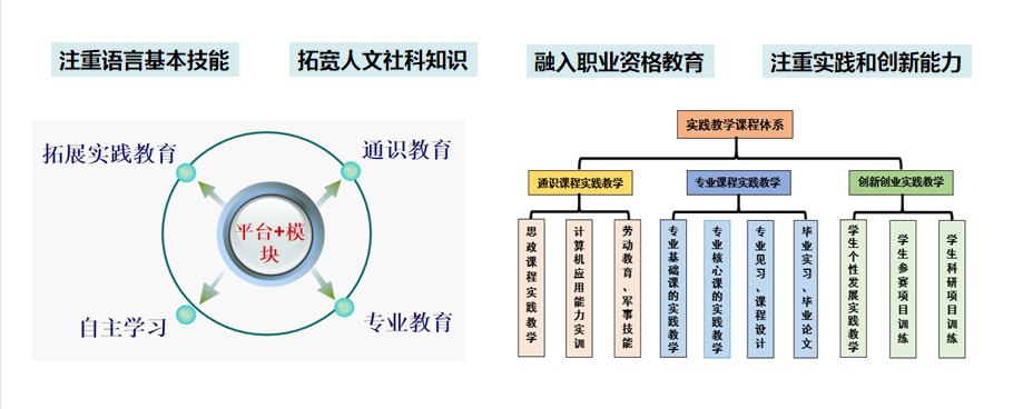 学院教学设施齐备、办学条件完善,建有公共语音实验室、跨境电商实验室、日本语言文化实验室、中西餐实训室等17个校内实验场所,在国内外建立了10余个长期合作的实践实习基地,涉及各类中外企业、星级酒店、旅游社、翻译机构、中小学校等。同时,学院开设赴美国、英国、新加坡、日本、韩国、泰国等海外留学实习就业项目,为学生提供充分的教学、实习、就业机会,为专业人才的培养提供了充分的平台保障。