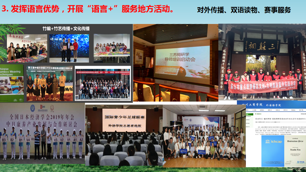 近年来,学院以“双创引领、教赛相融”为抓手,不断推动内涵建设与特色发展,在全国及地方外语类师生竞赛、互联网创新创业大赛、自主创业、服务地方等方面均取得了不菲成绩,先后获得国家级、省市级各类比赛奖项100余项。