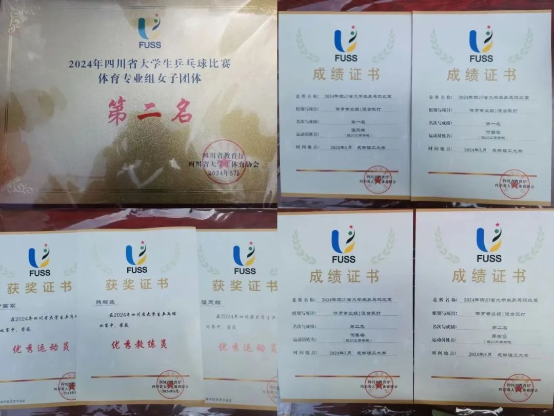 乒乓球训练队参加2024年四川省大学生乒乓球锦标赛,斩获混双项目第一、第二名,女子团体赛第二名。