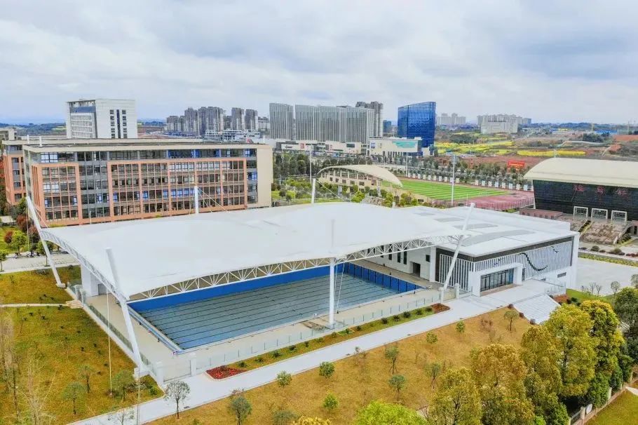 眉山校区超3亿元的体育硬件设施总投入,占地共4万7千平方米。包含游泳馆、体育馆、田径足球场,建有