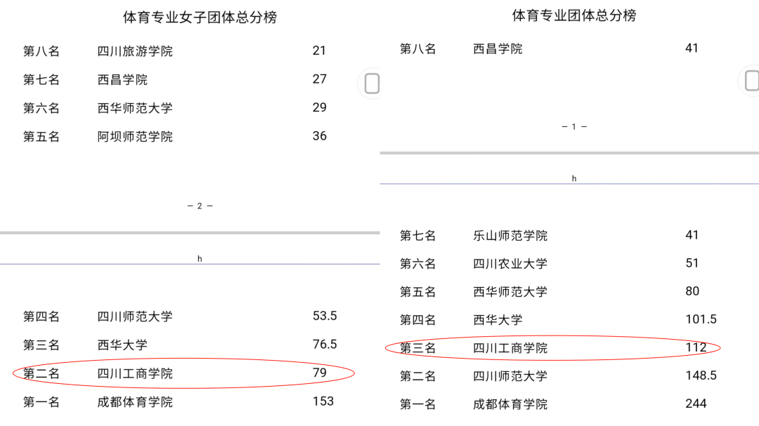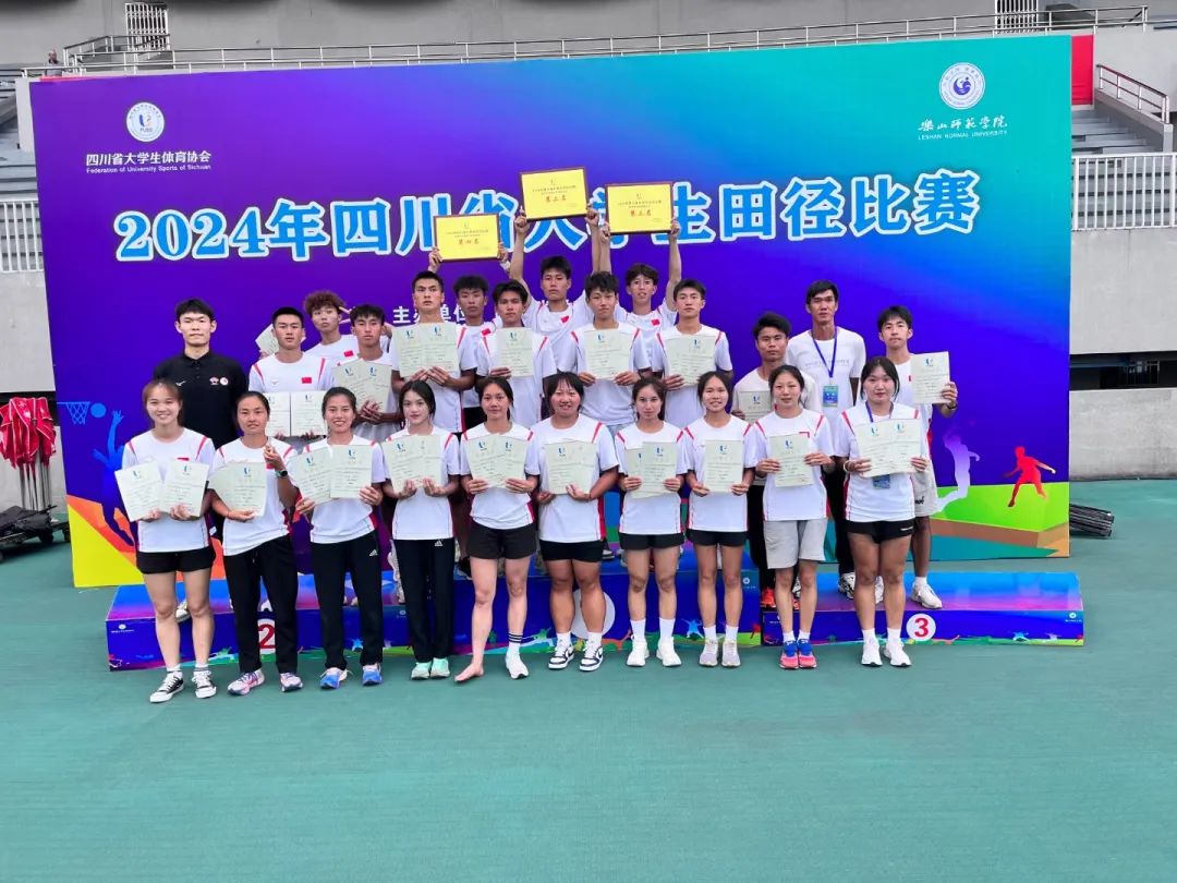 田径训练队在2024年四川省大学生田径比赛中共取得两金、两银、三铜,获得女子总分第二,男子总分第四,团体总分体育专业组第三名的成绩。