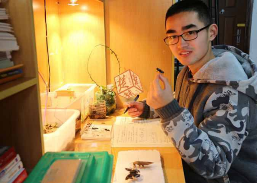 赵宇晨,生命科学与技术学院生物工程专业2017届毕业生,2017年考取宁夏大学硕士研究生,2020年在宁夏大学继续攻读博士学位研究生。在校期间,他利用业余时间养了万余只昆虫,涉及8大目21科,还撰写绘制了厚厚一本养殖笔记,在多个网络平台发布相关日志和图片近万张,详细记录每一种昆虫的生长过程并配上精美图片。他爱科学、勤动手的事迹,先后被《湖北日报》等多家媒体报道,300余家网站转载。