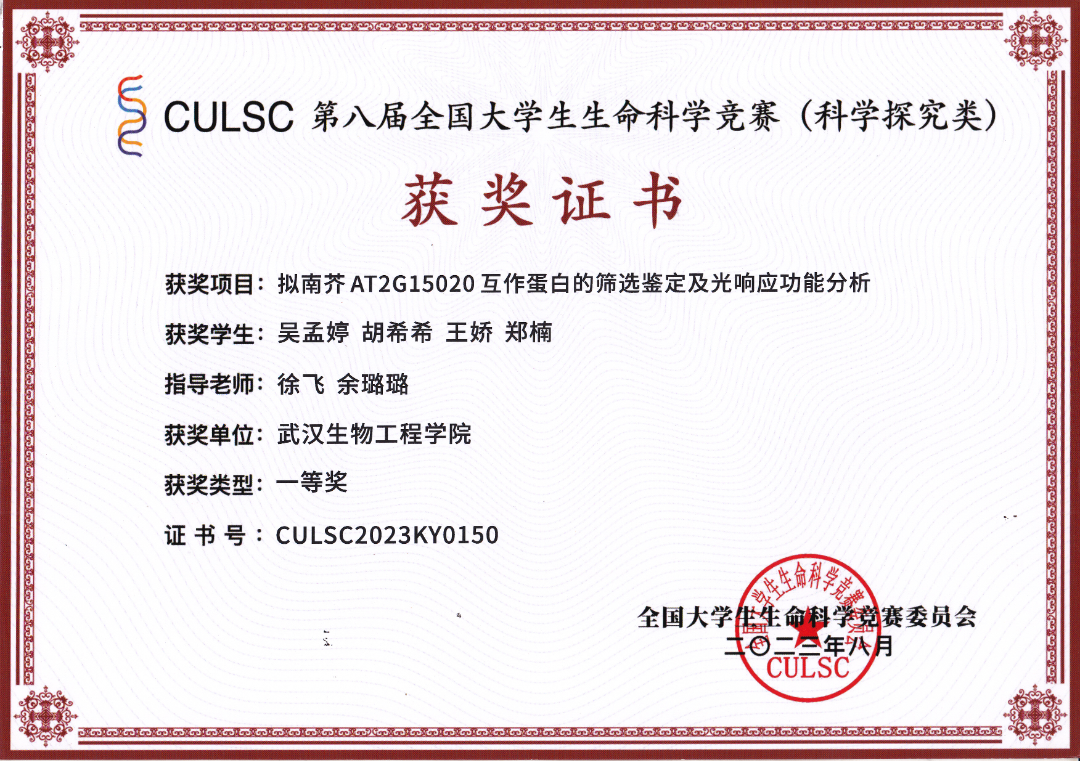 徐飞,博士,教授,硕士生导师,湖北省级人才,武汉生物工程学院长河青年学者,国家自然科学基金项目主持人,武汉市科技特派员,武汉市人民政府优秀博士人才资助获得者,湖北省植物生理与分子生物学会常务理事,湖北省细胞生物学会理事,高校生物学教学研究(电子版)编委。2012年毕业于四川大学,2017年10月至2018年10月在英国Sussex University开展访学研究;2019年5月至2019年6月在比利时Ghent University VIB center和西班牙Sevilla University CSIC center开展访学研究。曾主持1项国家自然基金项目,1项湖北省高等学校优秀中青年科技创新团队项目,1项武汉市教育局市属高校产学研项目和1项湖北省晨光计划项目等;参与完成6项国家自然基金项目和2项教育部博士点项目。主要从事植物逆境生理、植物病理及果实采后生理研究。现任生命科学与技术学院副院长。