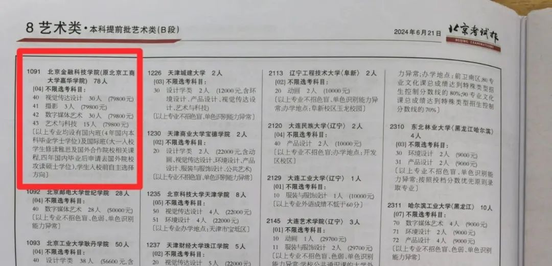 3.艺术类专业按照北京市本科提前批(艺术B段)录取,考生高考文化课成绩达到北京市艺术类本科录取控制分数线后,按综合投档成绩进行录取,不限制选考科目。