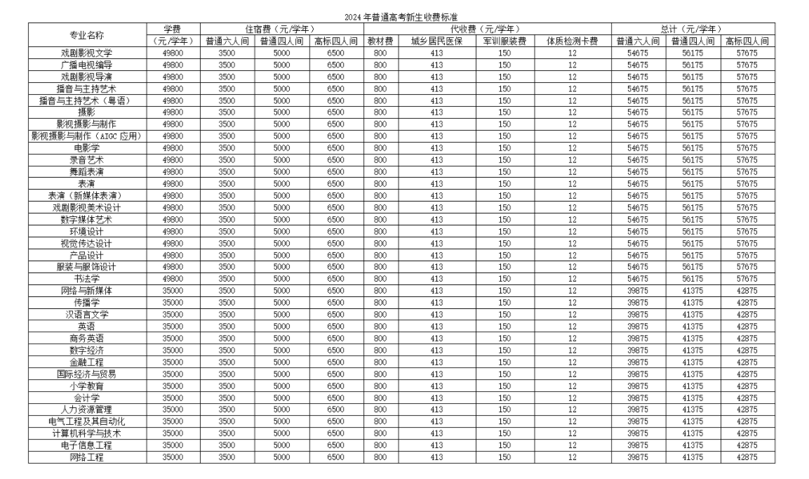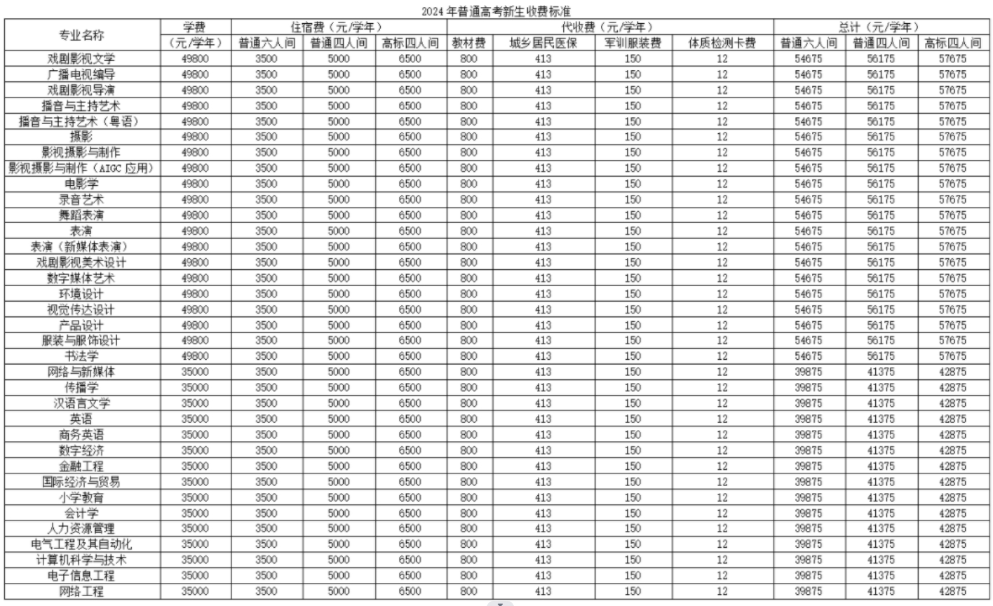 缴费方式2024我校住宿分为三个规格,六人间(3500元/学年)、普通四人间(5000元/学年)、高标四人间(6500元/学年)。为了方便入住请第一时间办理宿舍费缴费手续。学费等其他费用以录取通知书上缴费通知为准。