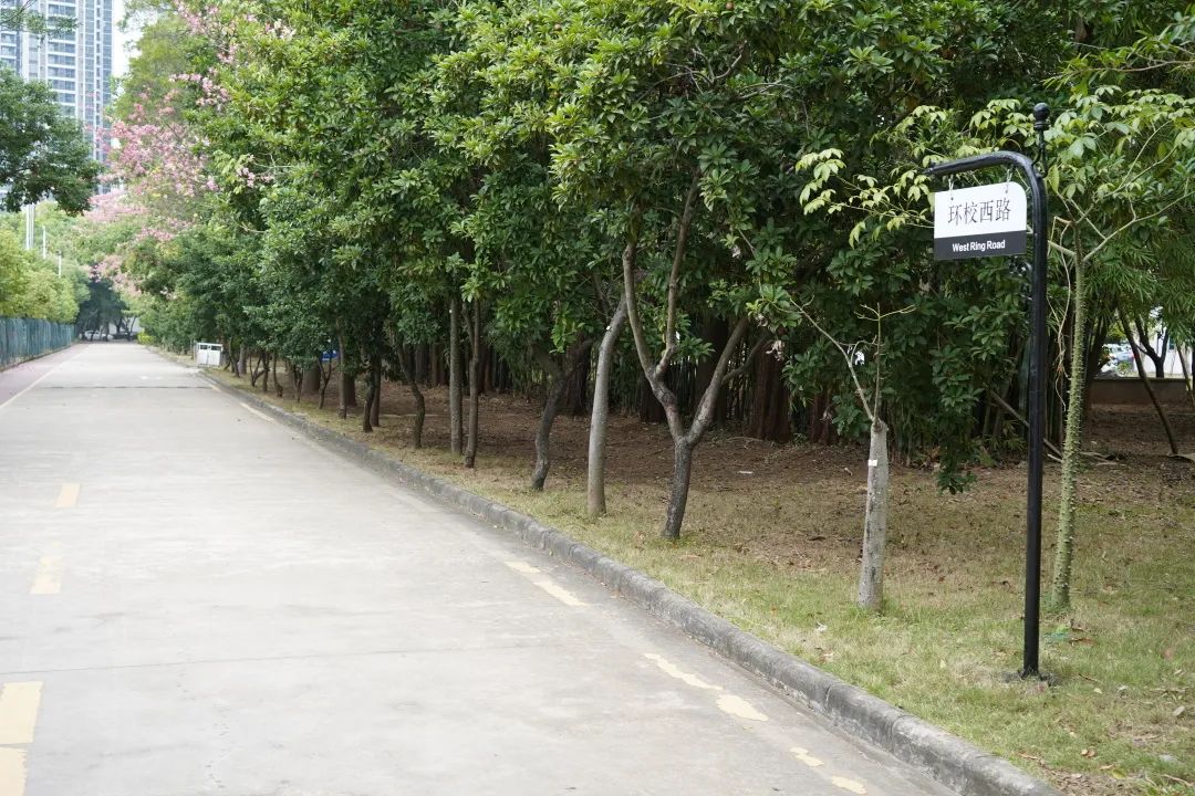 根据地理方位,处于校园西侧,因而命名为环校西路。该路起于笃行楼停车场北侧转弯处,止于“菜鸟驿站”。