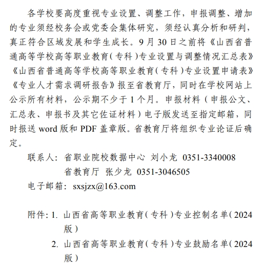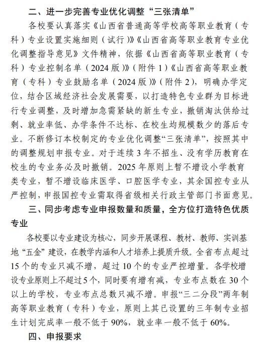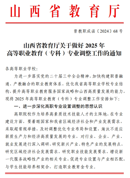 山西省教育厅关于做好2025年高等职业教育(专科)专业调整工作的通知