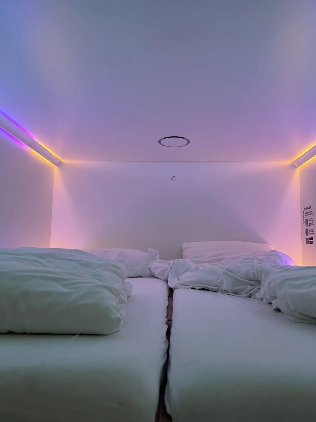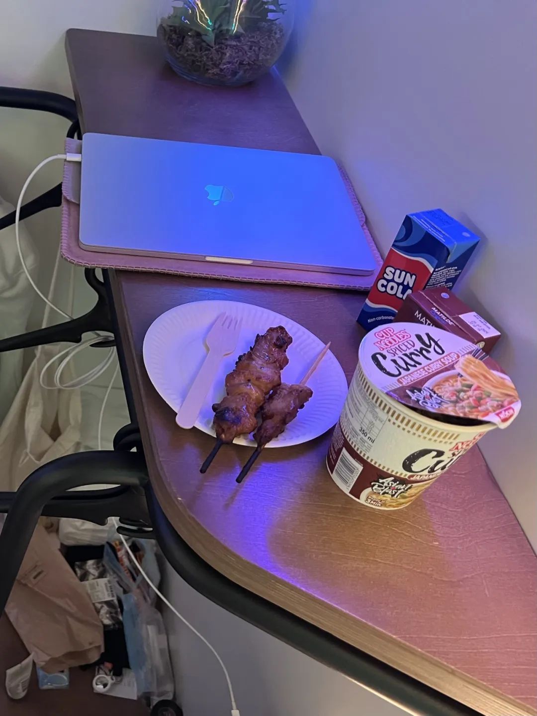 一路走回了胶囊旅馆,因为我早上刚买的交通票不知道掉哪里去了,难过。又饿了,去附近的便利店买了鸡肉串和泡面。想安静地呆一会,所以拿回了胶囊里面吃,我坐在距离地面的的床上,吃着我的晚饭。胶囊旅馆挺好,就是灯光太花里胡哨。