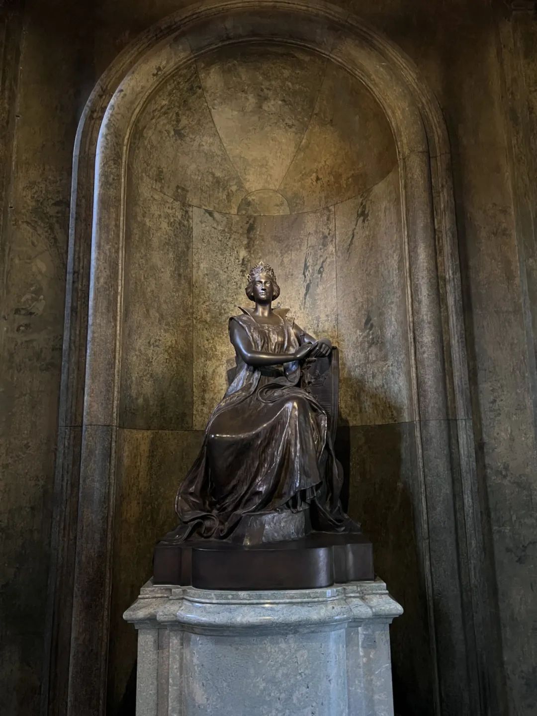 去了瑞典皇宫,进门看到了一个雕像,感觉自己走进了《芭比之魅力公主学院》的场景。我也不知道她是谁,但她端庄大方有气势。皇宫富丽堂皇。