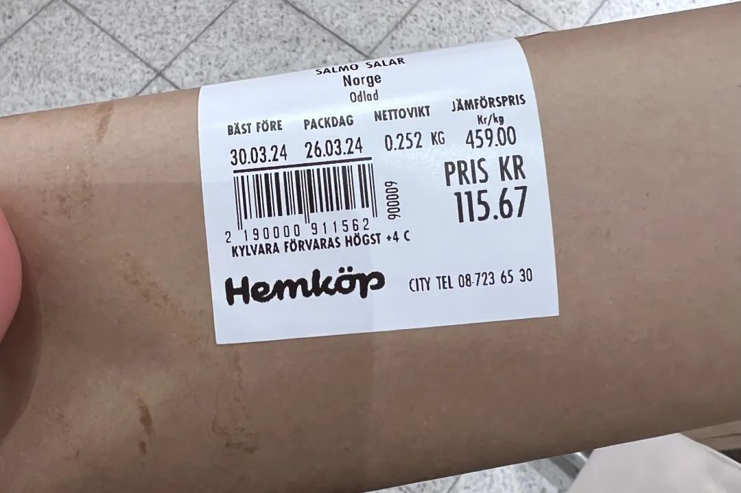 看完了去买了三文鱼,我倒要尝尝这北欧的三文鱼和我在国内吃得有什么不一样。尝不出来区别,但今天的三文鱼没切,我是啃着吃的,有点腻。