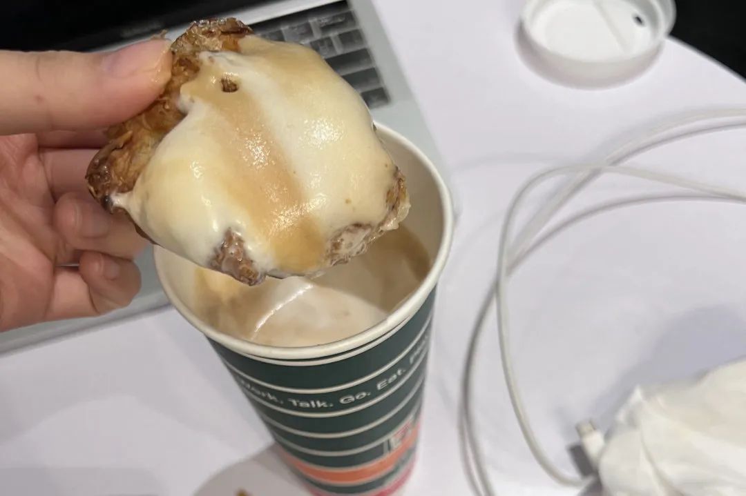 早上在711买了东西吃,面包沾咖啡有点好吃。中午去吃了网红鱼汤,一般。