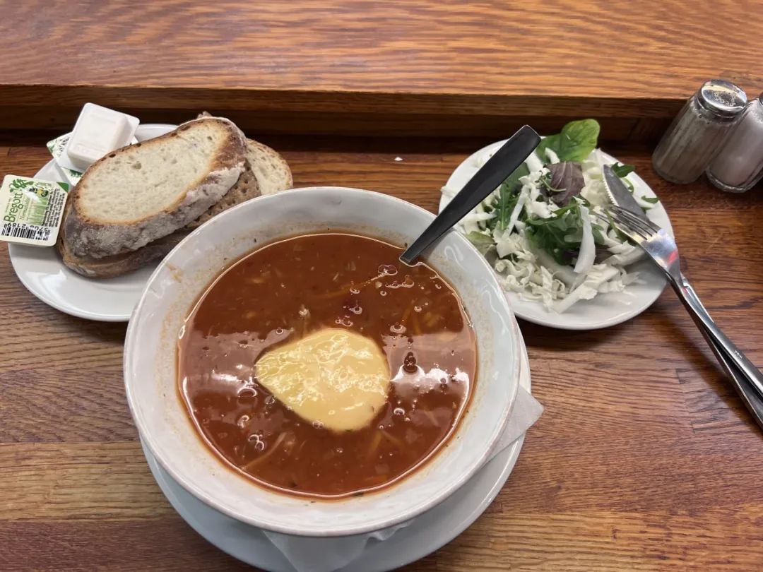订了酒店的早餐,除了酸奶,都不好吃。我还想着能吃到小馄饨、面条什么的,却忘了我在国外。
