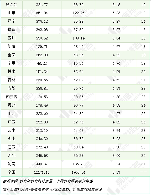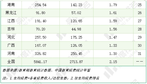 经费投入与学生人数不成正比,河南再次垫底