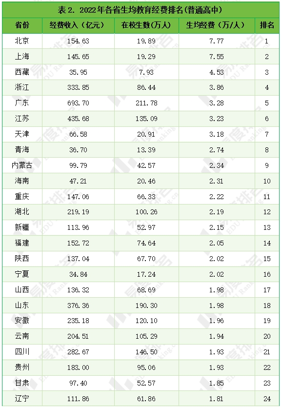 本文将通过各省的教育经费及生均经费来反映各省的教育资源差异。