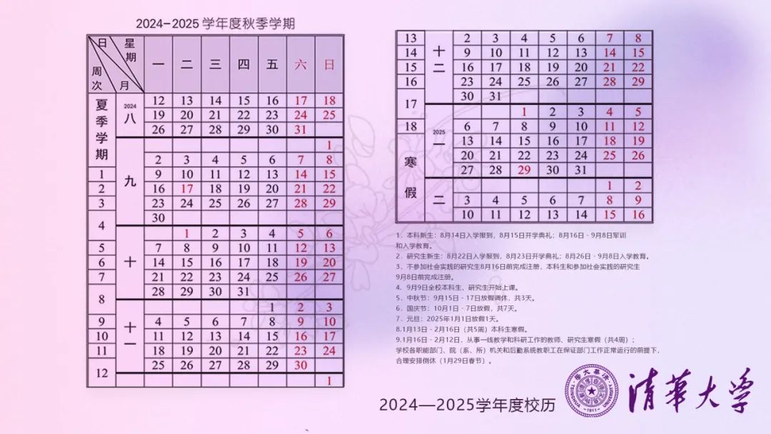2024-2025学年度秋季学期清华校历