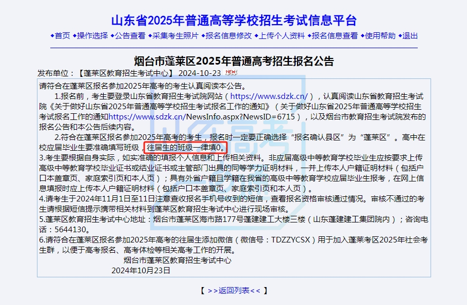 根据此前山东省教育招生考试院发布的《关于做好山东省2025年普通高等学校招生考试报名工作的通知》,其中提到了:非应届高级中等