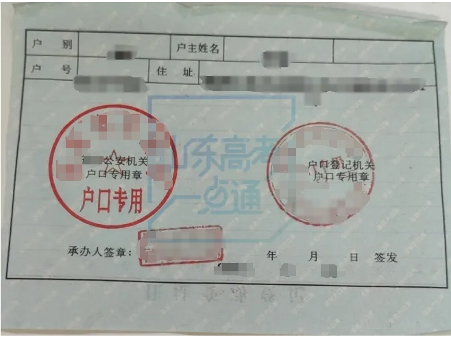 为了辅助各市县审核以户籍地报考的考生情况,除了往届生(复读生)需要上传户口本外,2025年高考报名新增了外省户籍考生且学籍在山东省的需上传本人户籍证明材料(包括户口本盖章页、全家索引页和本人页)。户口本盖章页: