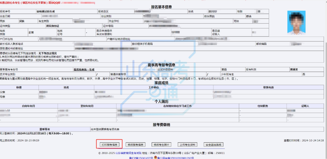 建议大家下载保存或者截屏保存报名信息表。能打印出高考报名表,也表示你的高考报名已经成功了。