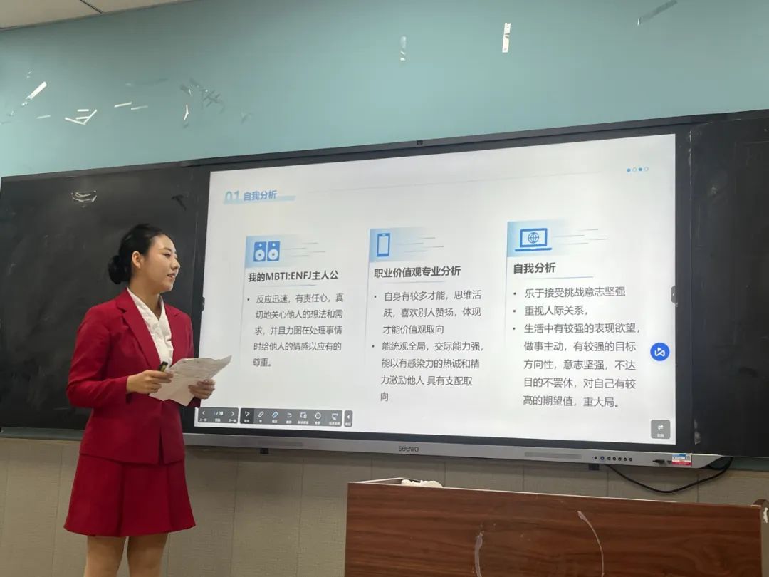 二、开展职业生涯比赛组织安仁校区播主学院同学参加职业生涯规划大赛院赛。面向全院学院同学发布大赛通知,详细说明院赛的主题、规则、参赛方式和截止日期等信息。学院同学踊跃报名,积极参与院赛,社区22名同学参与比赛。现场评比时,让选手们依次展示自己的职业生涯规划,包括自我分析、职业目标、实施计划等内容。评委老师刘京晶、胡阳杰根据学生现场展示内容、表达能力等进行打分。从中推荐2名同学参加学院复赛(24主播03班尼玛拉姆、24空乘01班王韵可)。对这2名推荐选手,安排专门的指导老师,针对他们规划中的不足,如目标设定的合理性、计划的可行性等进行一对一指导,帮助他们完善规划,更好地应对复赛。