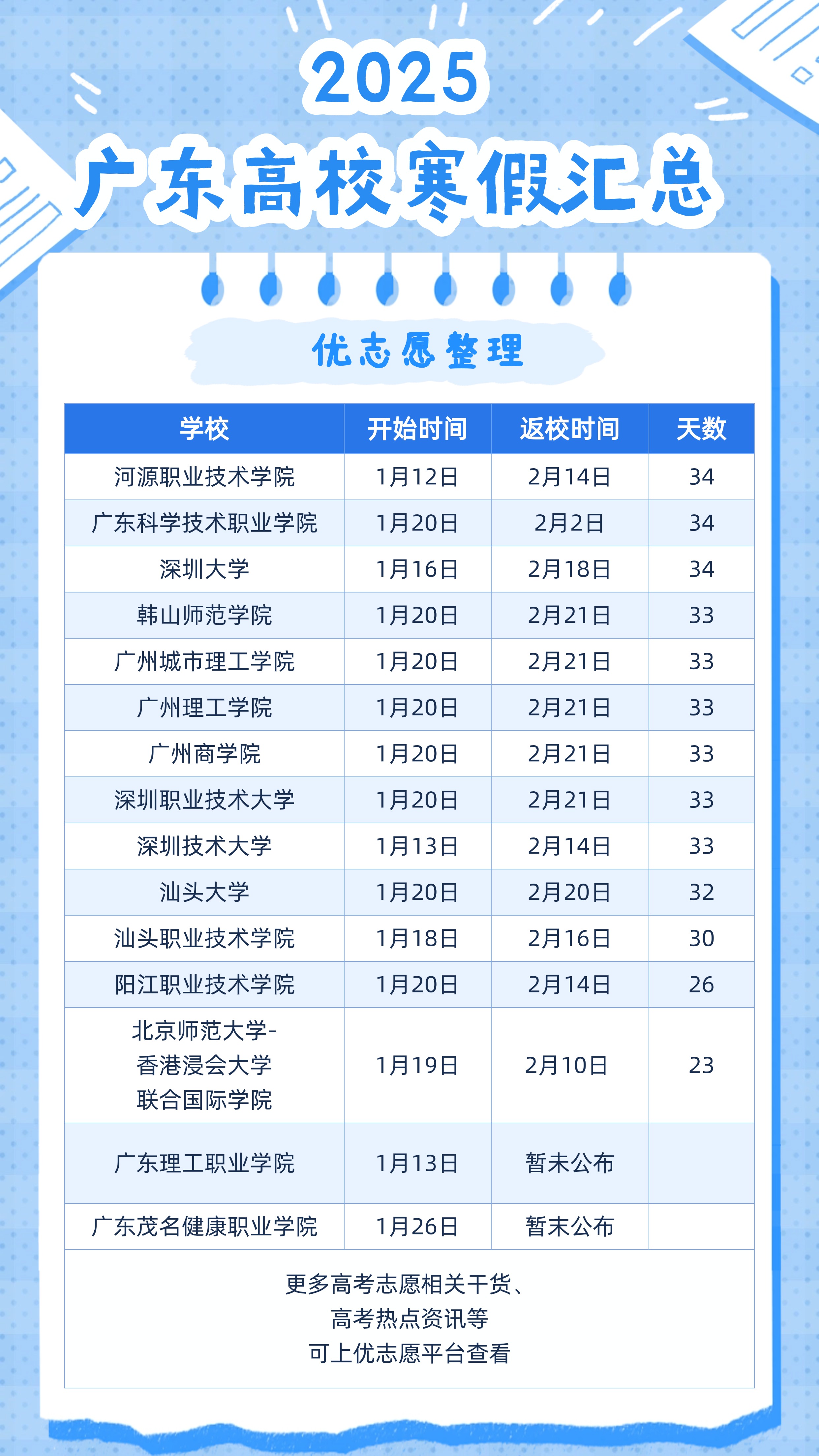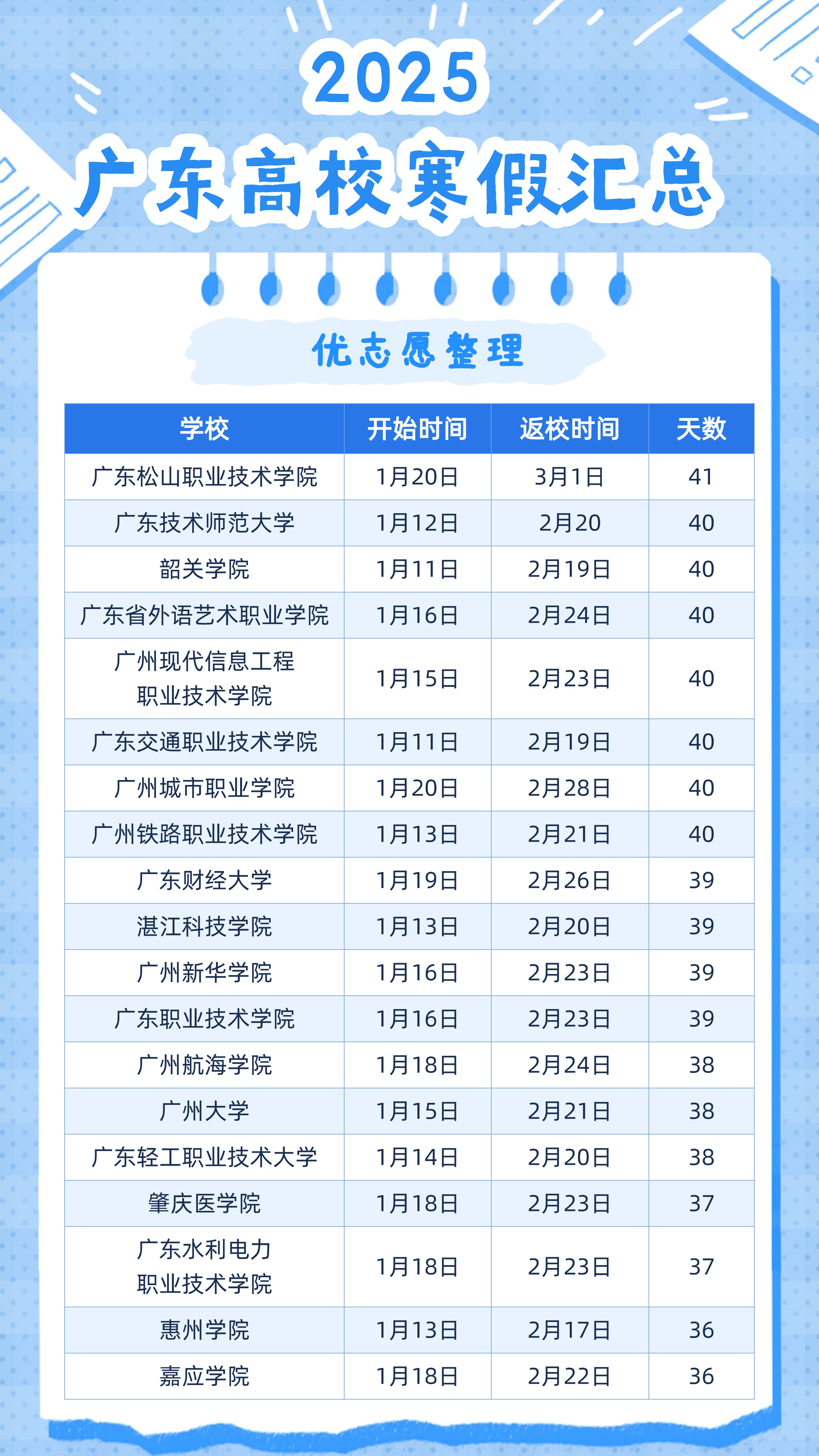 目前,超90所广东高校已公布寒假时间。大部分高校的寒假从2025年1月中上旬开始,2月中下旬结束,寒假天数在29天到50天。