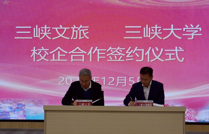 本网讯(通讯员 李昌旭) 12月5日,我校与湖北三峡文旅集团校企合作签约仪式在三峡游客中心举行。三峡大学党委常委、副校长李东升,湖北三峡文旅集团党委书记、董事长王精复出席签约仪式。湖北三峡文旅集团、三峡旅游集团,三峡大学招生及就业指导处、社会服务与对外合作办公室、经济与管理学院、艺术学院负责人,以及我校师生代表参加了签约仪式。