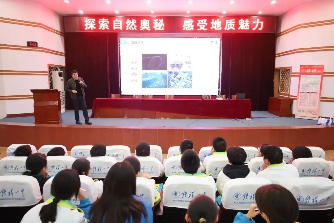 随后,三峡大学土木与建筑学院地质工程系主任郭飞副教授以《探索自然奥秘 感受地质魅力》为主题,从地质景观、地质资源、地质灾害、地质名人等角度,用身边的实例、以科普的语言来解读地质工程专业涉及领域及将来可能从事的工作,讲授地质人故事,弘扬科学家精神,为钟祥一中学子带来了一场丰盛的知识盛宴。