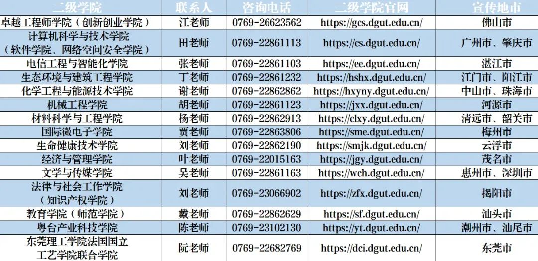 (东莞理工学院2024年各二级学院招生小组联系方式)