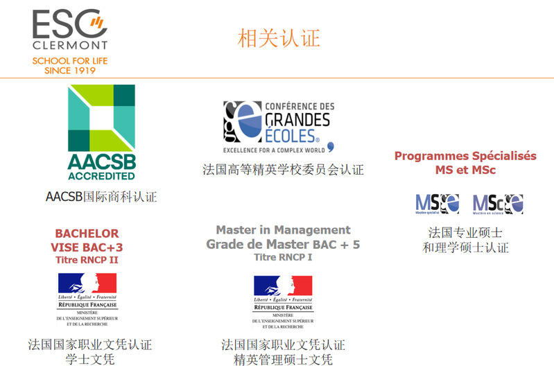 1. Clermont Business School in France is a century-old university and one of the world's top 100 business schools. All of its degree certificates are recognized by the Ministry of Education of China.
