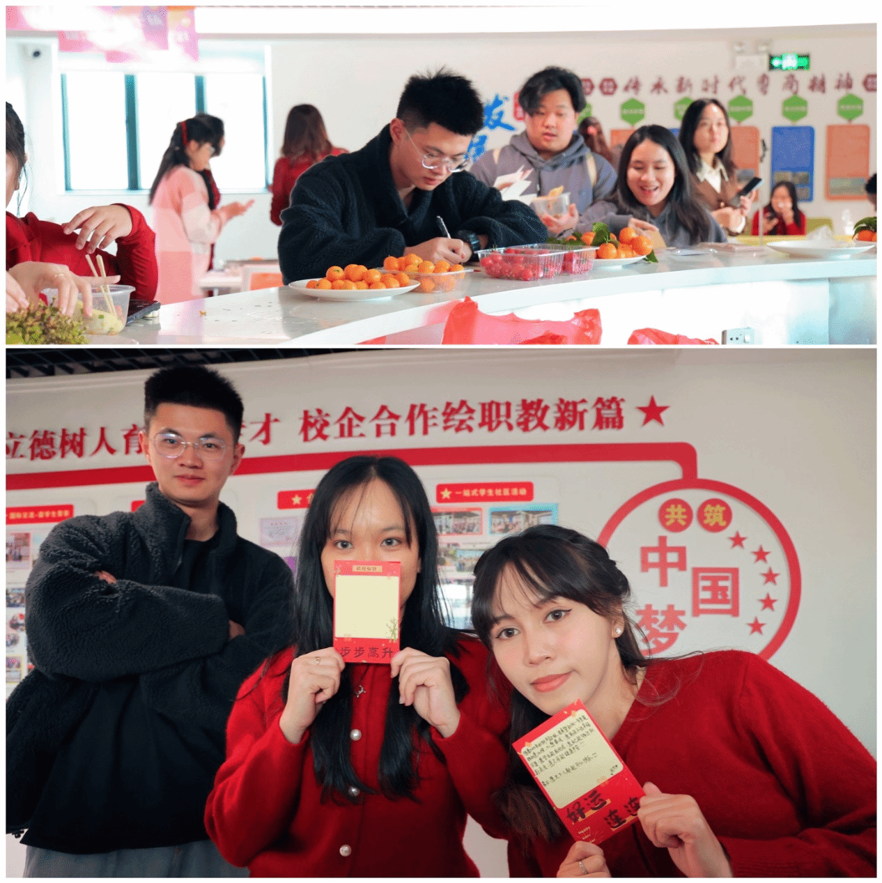 文化交融是本次活动的亮点。印尼学生带来别具韵味的《关关雎鸠》演唱,用独特的视角诠释中国经典,赢得阵阵掌声。教师代表们深情演唱《祝福》,熟悉的旋律既传递了对新年的美好祈愿,也为即将结束培训回国的印尼留学生们送上了美好的祝福。集体包饺子环节将活动推向高潮。大家分工协作,擀面皮、包馅料,忙得不亦乐乎。不同形状、风格的饺子摆满桌面,寓意着团圆与和谐。活动过程中,师生们写下了新年祝福卡,将对新年的憧憬与期望诉诸笔尖。