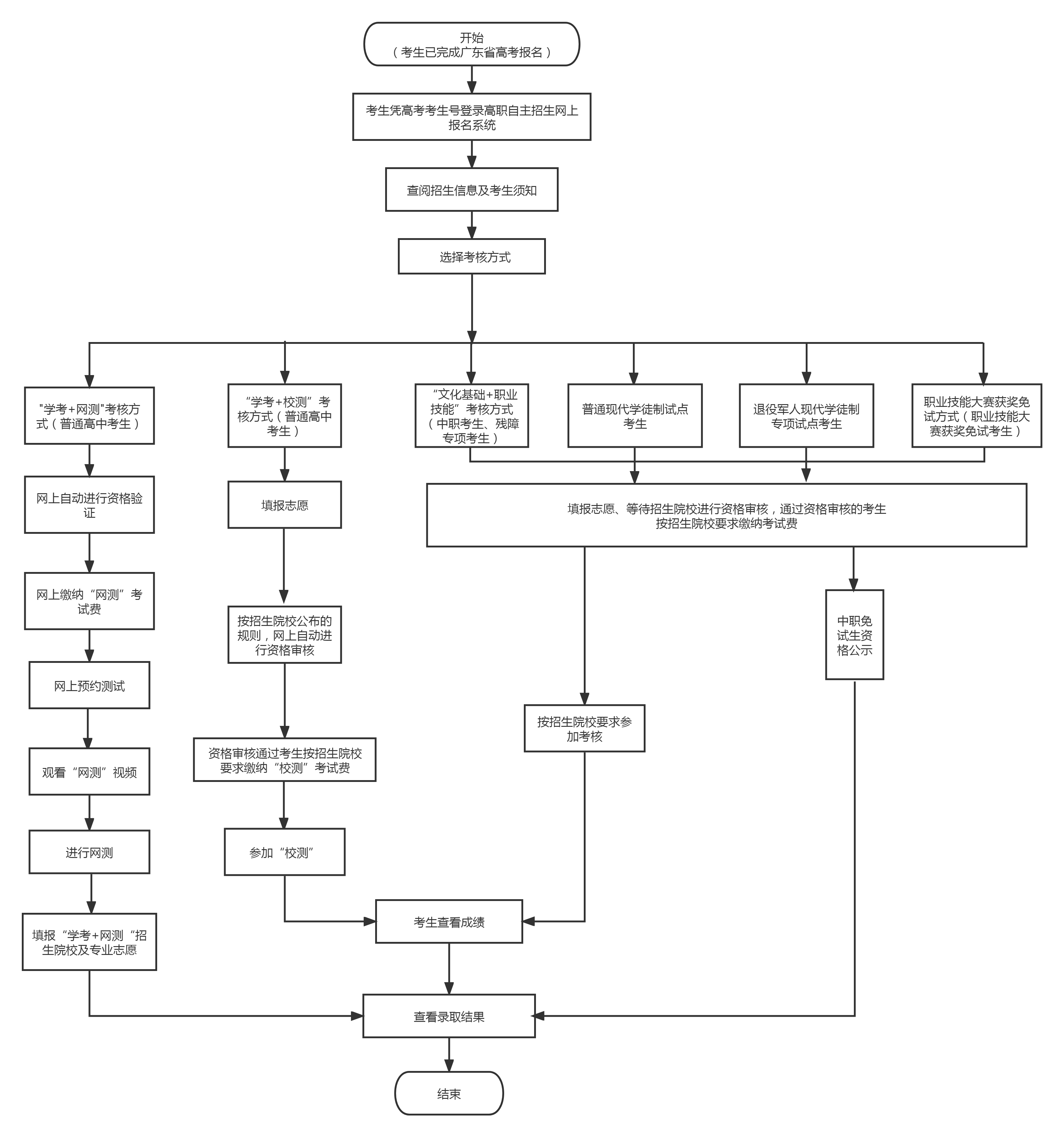考生须在规定时间内根据本人报考条件,在“学考+网测”(面向普通高中考生)、“学考+校测”(面向普通高中考生)、“文化基础+职业技能”(面向中职考生)、“普通现代学徒制试点”(不分考生类型)、“退役军人现代学徒制专项试点”(不分考生类型)及“职业技能大赛获奖免试生”(面向中职考生)六种考核方式中选择一种填报志愿,缴交考试费,录入相关报名信息,上传有关证明材料(原件扫描版)。经我校确认报考资格后,考生不得更改考核方式。