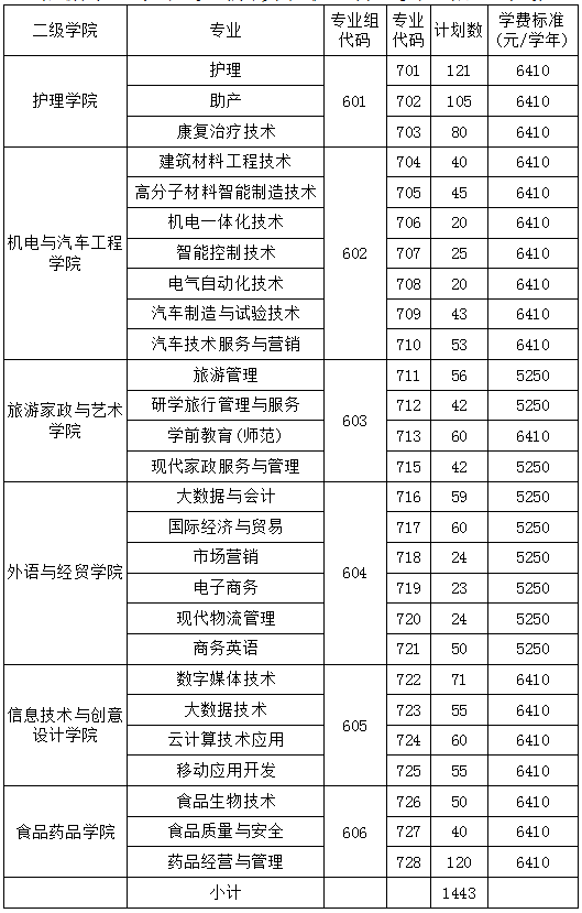 2023年清远职业技术学院春季高考招生计划