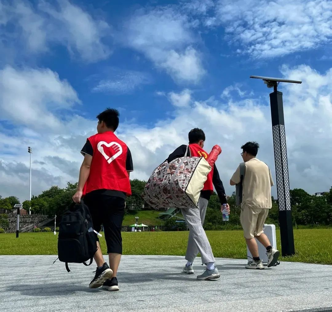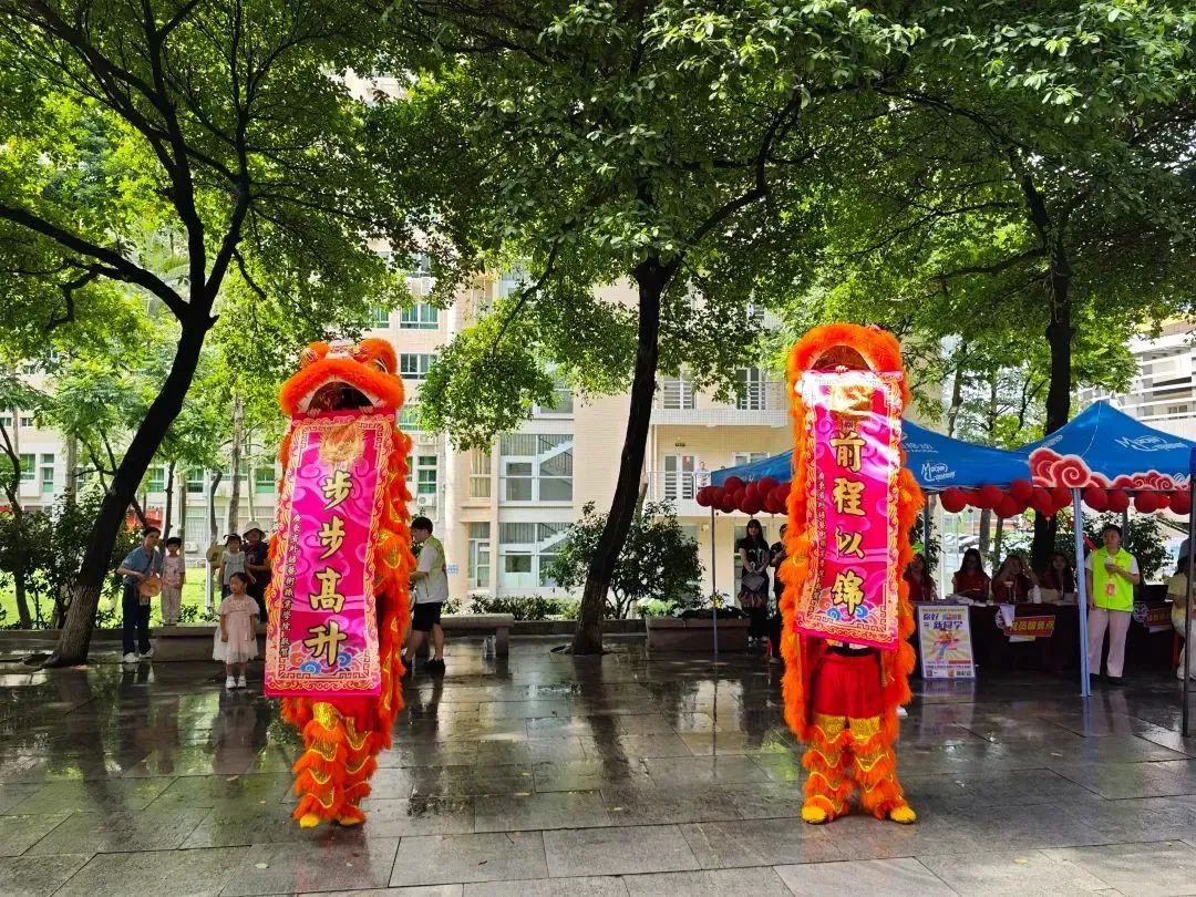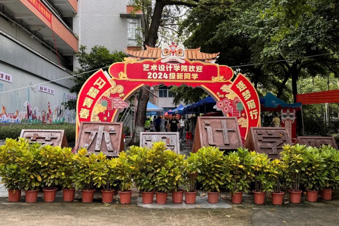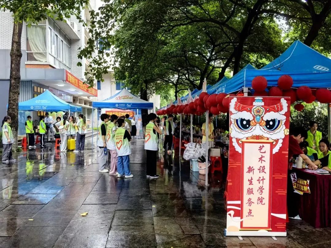 艺术设计学院锚定“德技并修”新生培养目标,打造了“党建+非遗+服务”特色迎新模式。围绕“南粤醒狮”主题,创作设计系列“醒狮”迎新文创,包括醒狮拱门、醒狮打卡点等,同时学院醒狮队的《醉狮》等节目表演,赢得师生家长的阵阵喝彩,一次次将迎新现场气氛推向高潮。现场近300名志愿者全天候等待、陪伴,雨水、汗水交织,同学们热情不减,他们是团委学生会成员、是助班、更是一心服务同学的艺设学子。