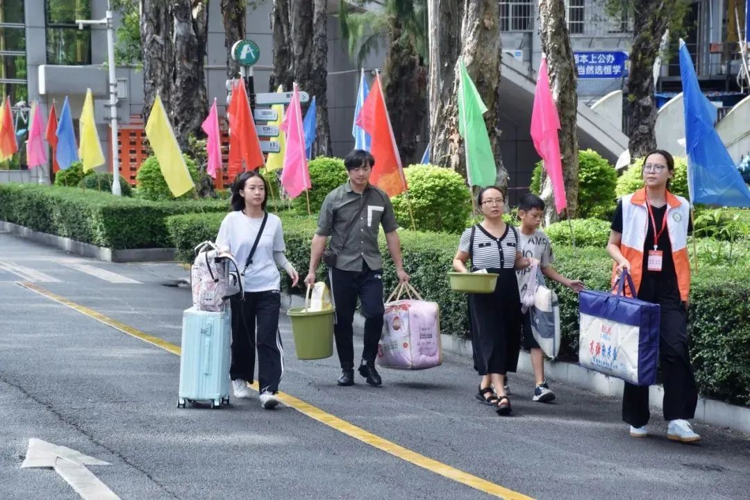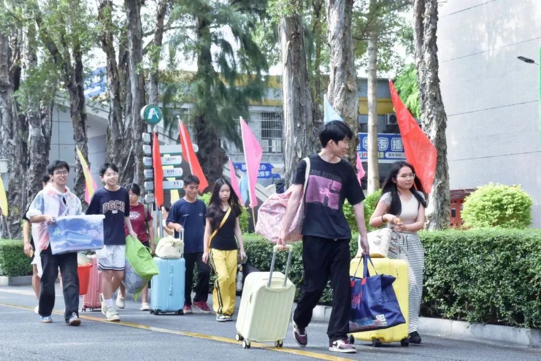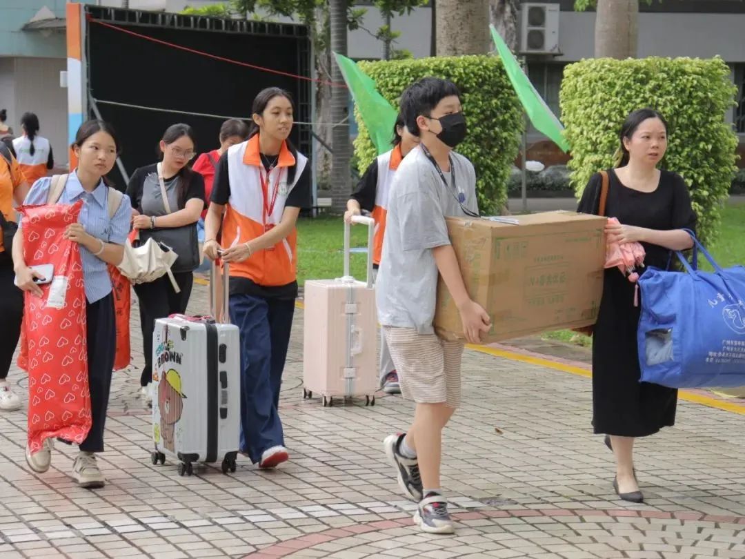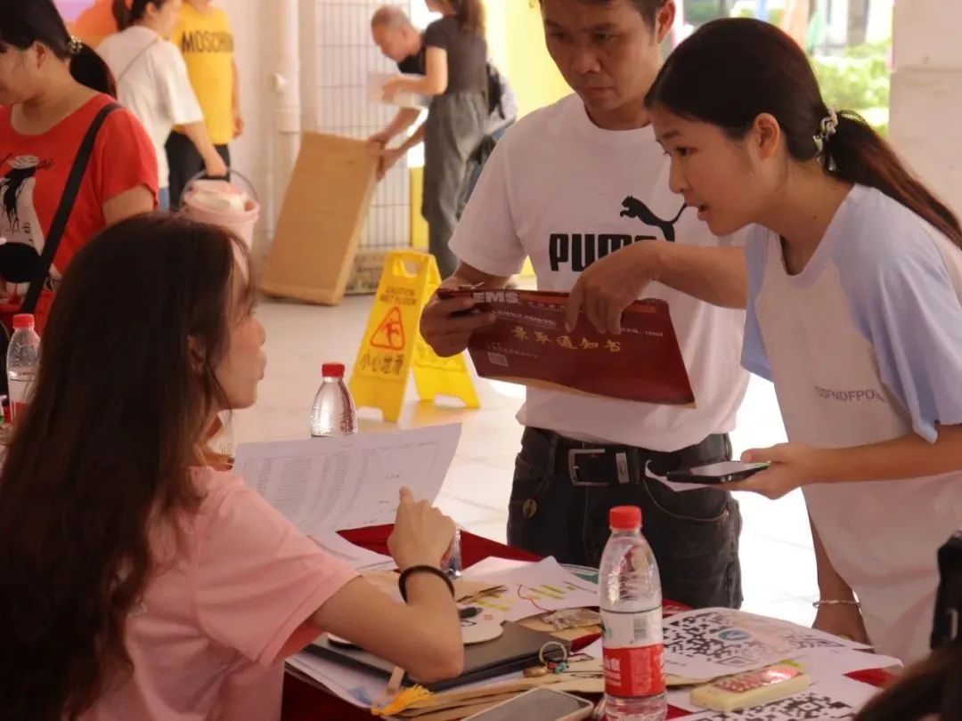 艺术设计学院锚定“德技并修”新生培养目标,打造了“党建+非遗+服务”特色迎新模式。围绕“南粤醒狮”主题,创作设计系列“醒狮”迎新文创,包括醒狮拱门、醒狮打卡点等,同时学院醒狮队的《醉狮》等节目表演,赢得师生家长的阵阵喝彩,一次次将迎新现场气氛推向高潮。现场近300名志愿者全天候等待、陪伴,雨水、汗水交织,同学们热情不减,他们是团委学生会成员、是助班、更是一心服务同学的艺设学子。