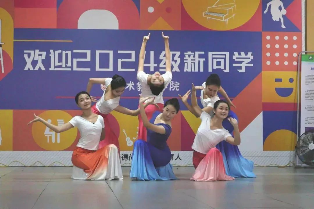 艺术教育学院结合专业特色,设计了傣族、藏族、英歌舞、笛子独奏等舞蹈和器乐表演迎新节目,还打造了“强国有我”党建知识问答、表情墙自助创意区、美术拓印、现场书法并赠送书签等迎新互动活动,现场迎新“氛围感”“仪式感”拉满。此外,学院还为每位新生定制学院文件袋、印制《新生导航计划》,满满“归属感”,同时帮助新同学更快融入学院大家庭。