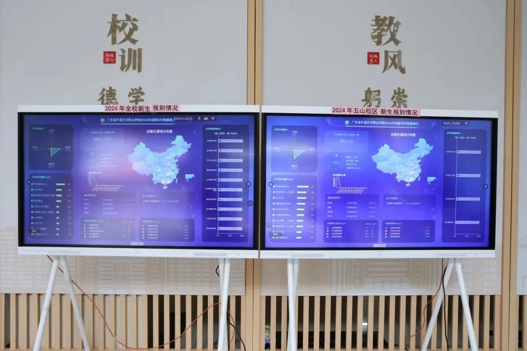 图/现代教育技术中心在各校区投放新生报到数据大屏,时时展现新生报到情况