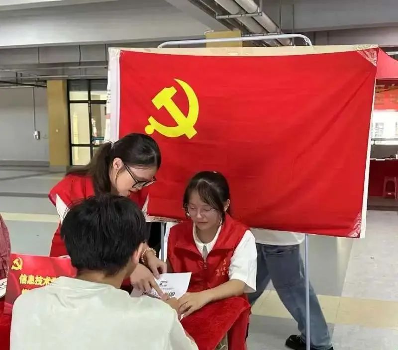 信息技术学院的迎新环节设计融合创新科技与艺术,精心策划了创意视频大荧幕观影区、热情四溢的音乐表演、党员先锋岗风采展示等一系列迎新活动,并召开新生家长见面会,全面介绍学院情况,耐心答疑解惑。信息技术学院以党建为引领,利用自身专业优势,为新生打造了一场视觉与听觉的盛宴,让新生在入学第一天就能感受到浓厚的科技氛围和学院关怀,助力他们更快地融入这个充满活力与创新的信息技术大家庭。