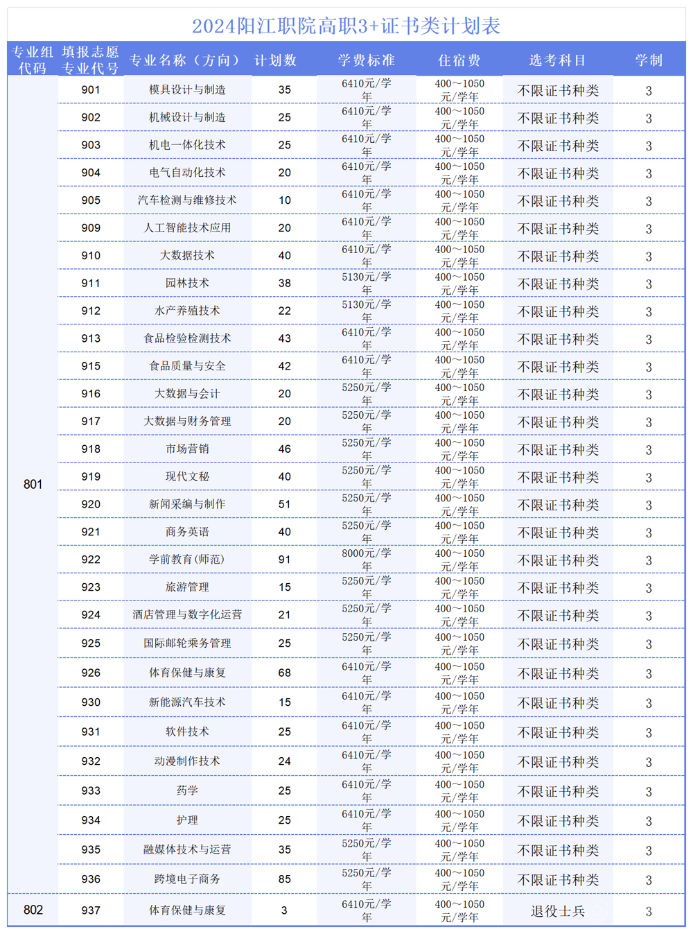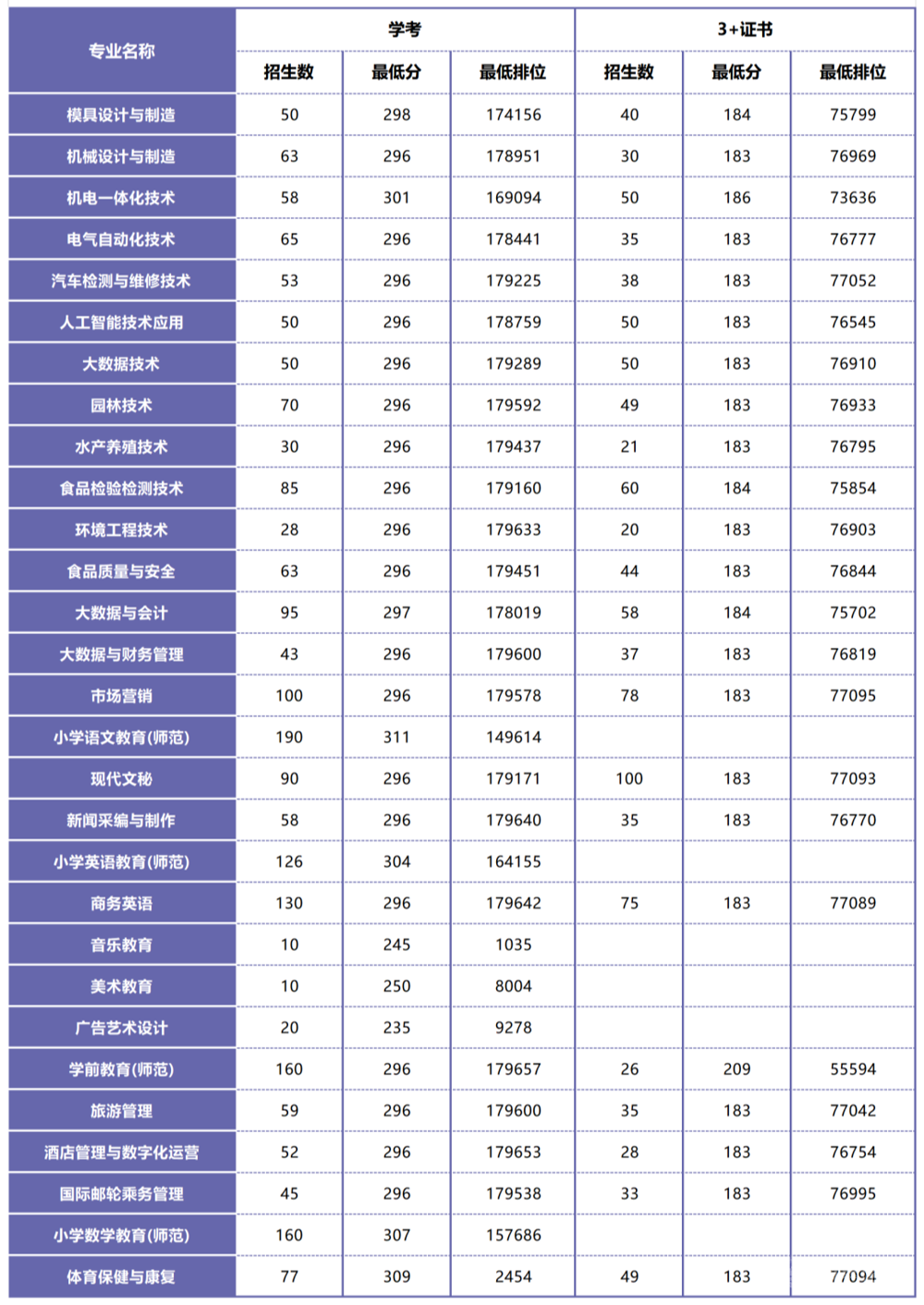 (3)高职3+证书招生计划