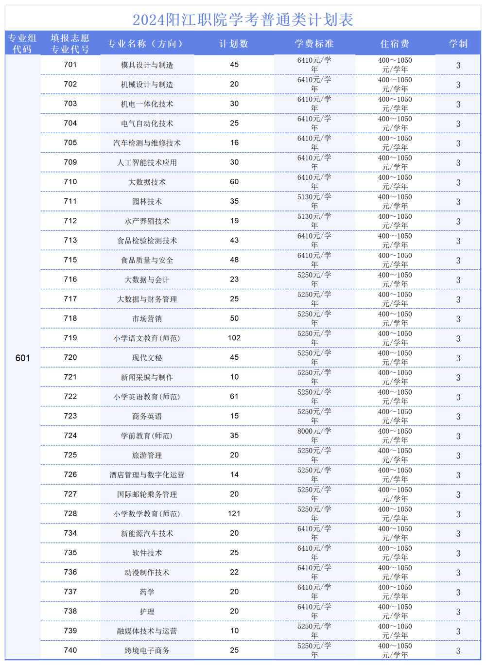 阳江职业技术学院2024年春季高考招生计划