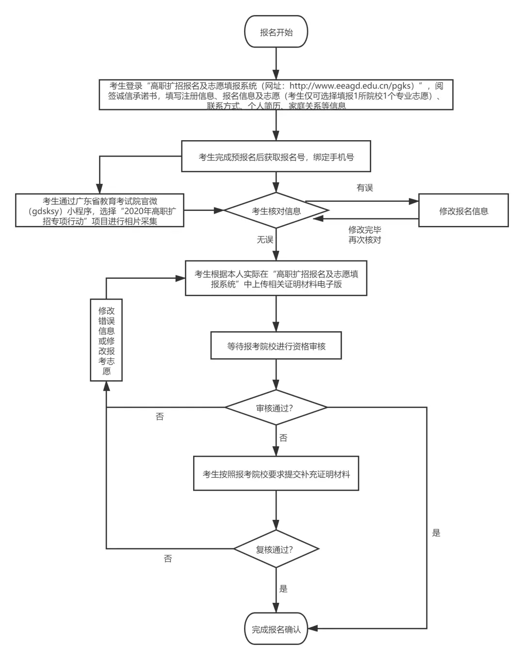 2、高职扩招考生报考资格审定工作实行网上审核与线下审核相结合的方式,我院根据考生在系统中填报信息以及上传的相关证明材料电子版对考生进行资格审核。若因考生未正确填报联系方式,我院无法联系考生提供必要的证明材料的,考生报考资格审核不通过的后果由考生自负。