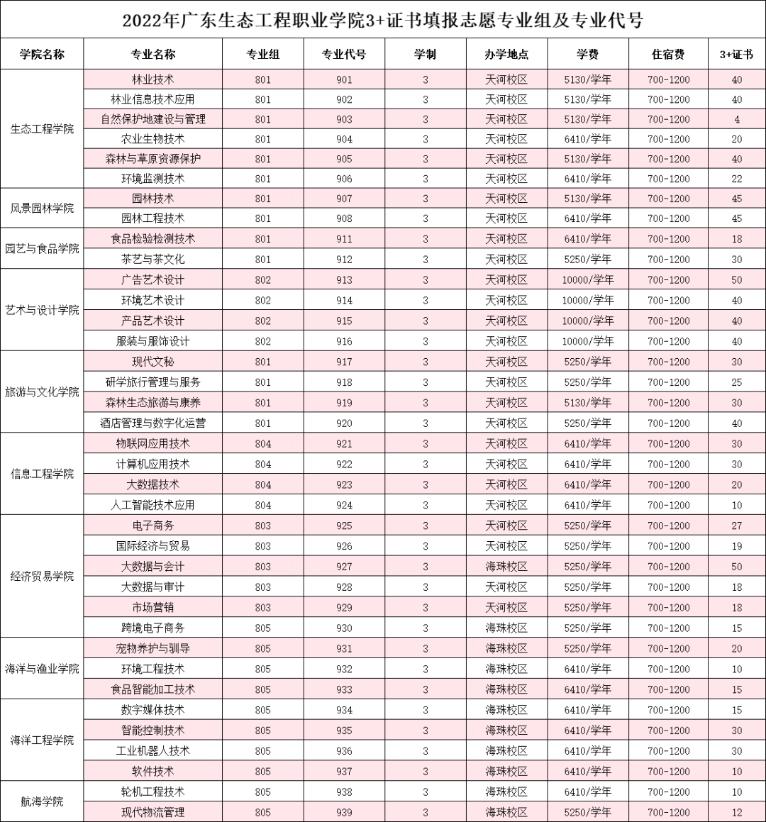 广东生态工程职业学院2022年3+证书招生计划