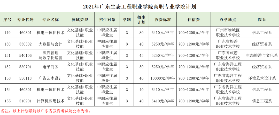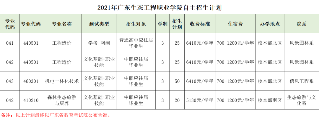 广东生态工程职业学院2021年自主招生计划