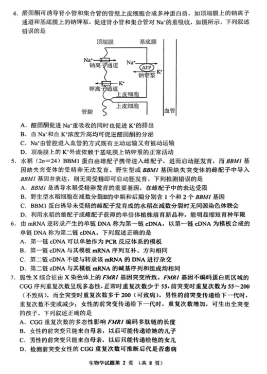 河南省2025年高考综合改革适应性练生物学试题及答案