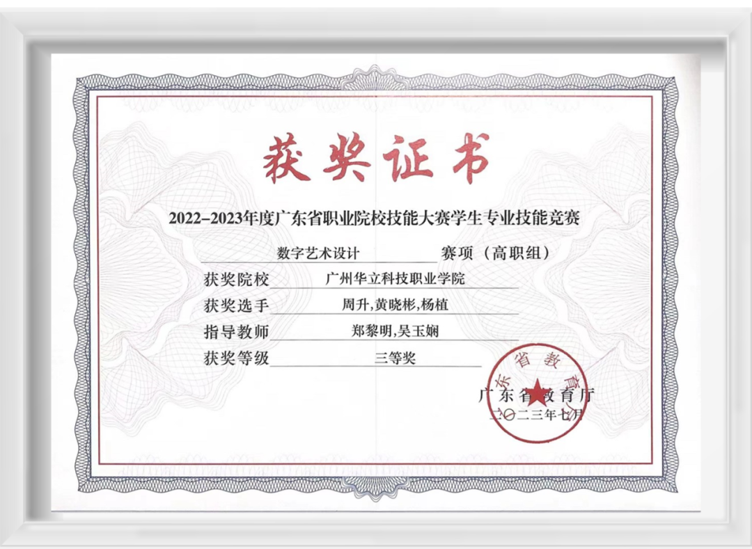 • 2022-2023年度广东省职业院校学生专业技能大赛短视频制作赛项二等奖;