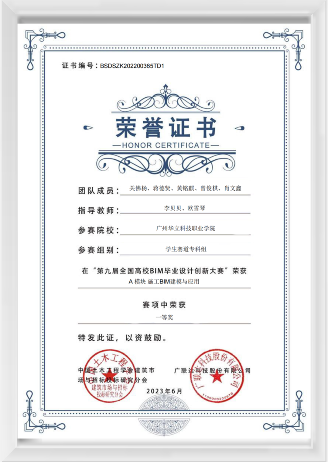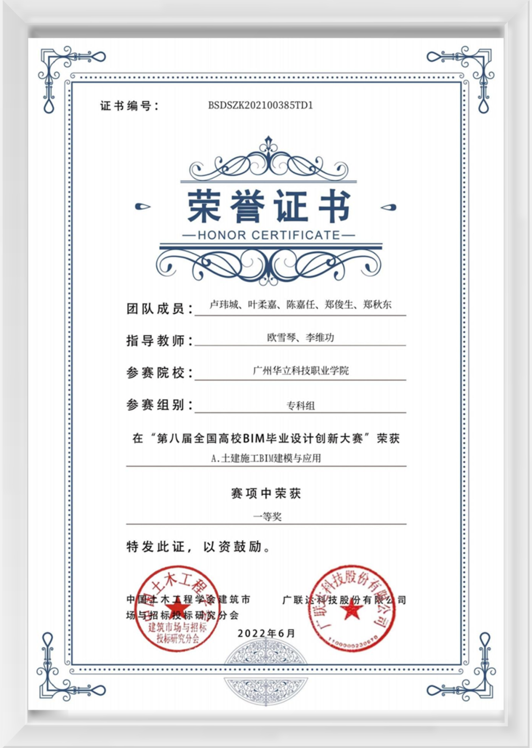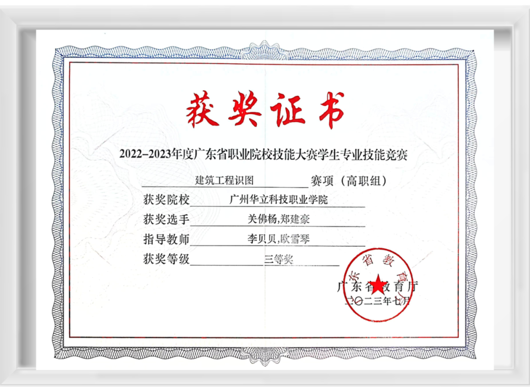 •2021-2022年度广东省职业院校技能大赛建筑工程识图赛项三等奖;