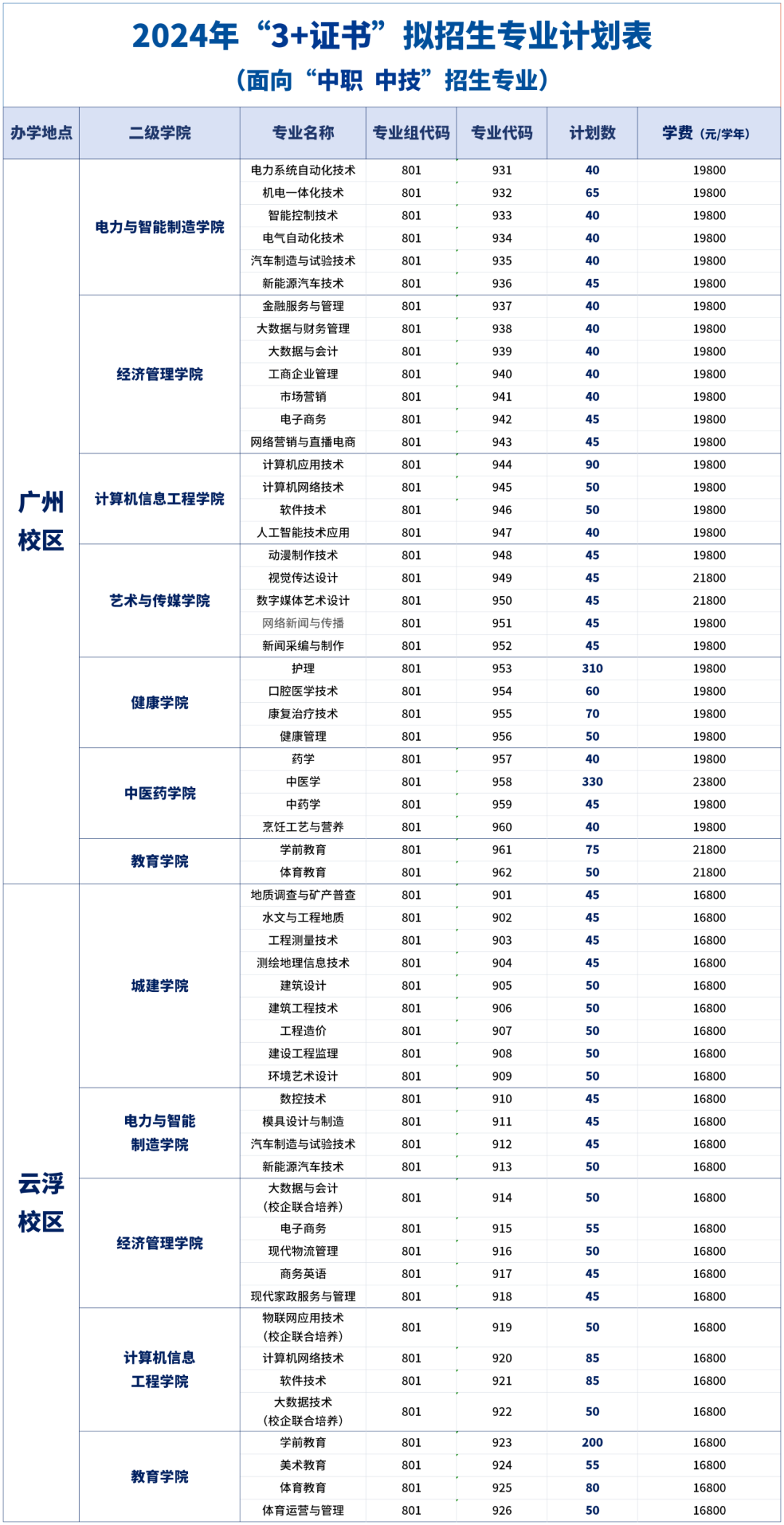 🎯 “3+证书”考生可以填报我校任一专业;且我校对“3+证书”考生持有证书种类不作要求,只要符合广东省教育考试院要求的证书即可;
