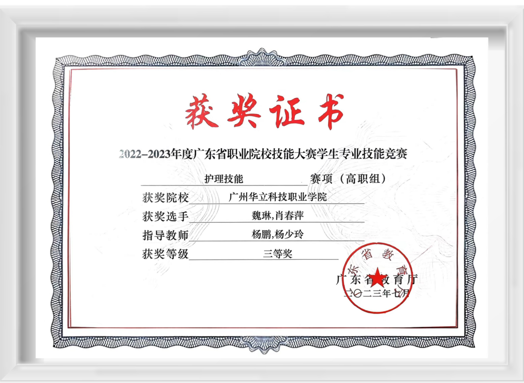 • 2022-2023年度广东省职业院校学生专业技能大赛养老服务技能赛项二等奖;