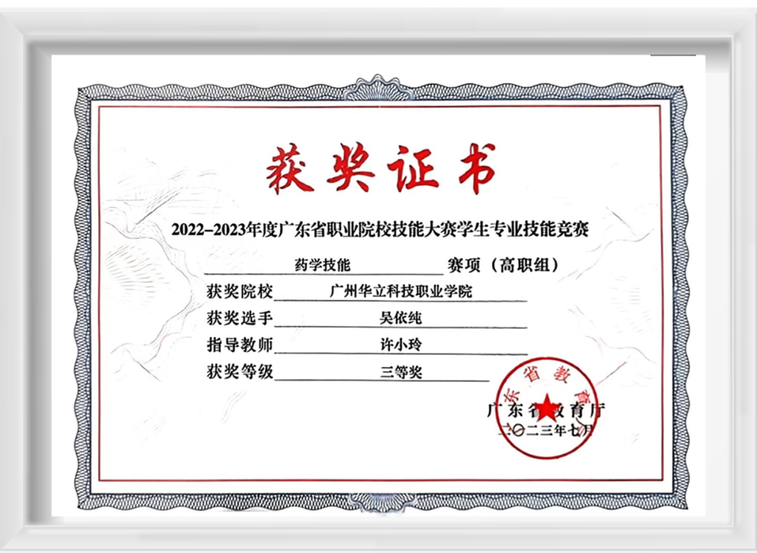 •2021-2022年度广东省职业院校技能大赛药学技能赛项三等奖;