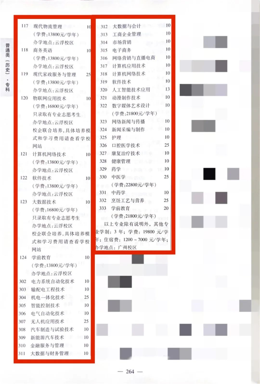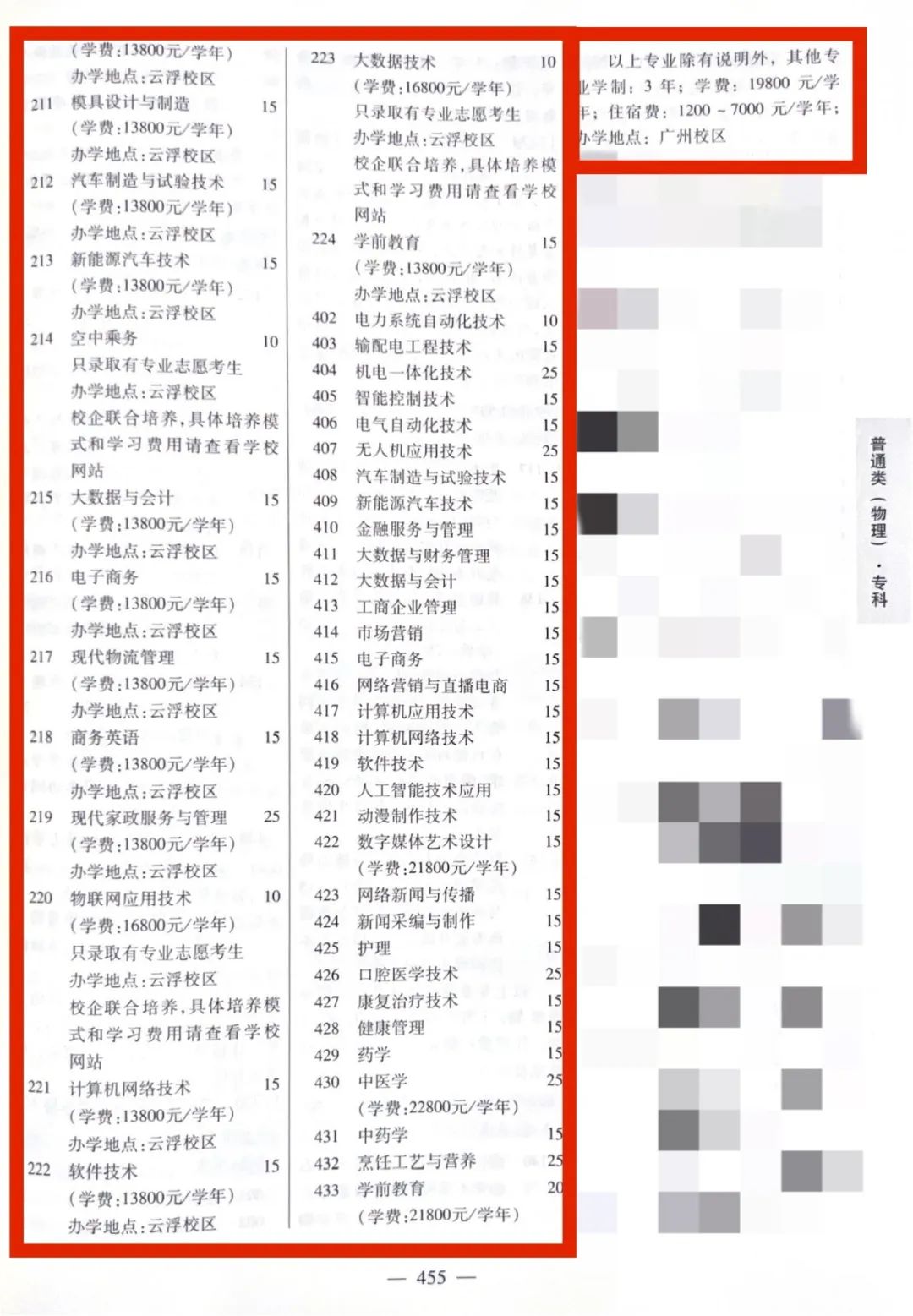 广州校区专业代码为数字3和4开头,云浮校区专业代码为数字1和2开头。